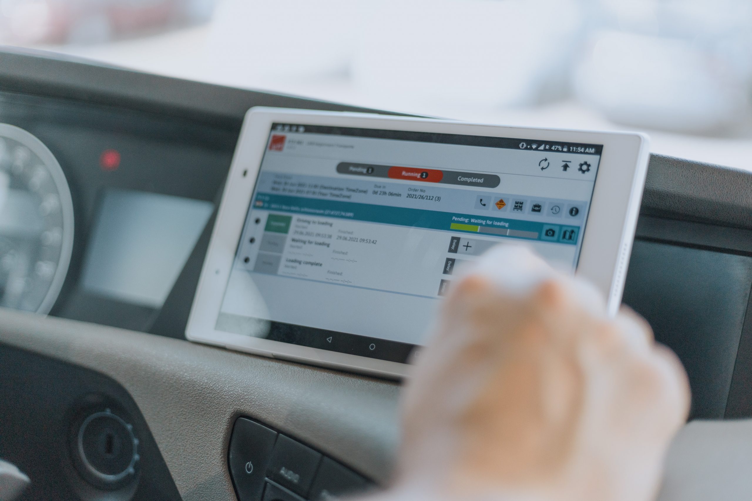 Our drivers are equipped with tablets that allow them to view their routes, scan documents, record defects on the truck and communicate with their disposition department.